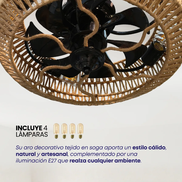 Ventilador De Techo Abon Garden Zentra Agz18550 Yute 49 Cm Yute Negro Abs 7