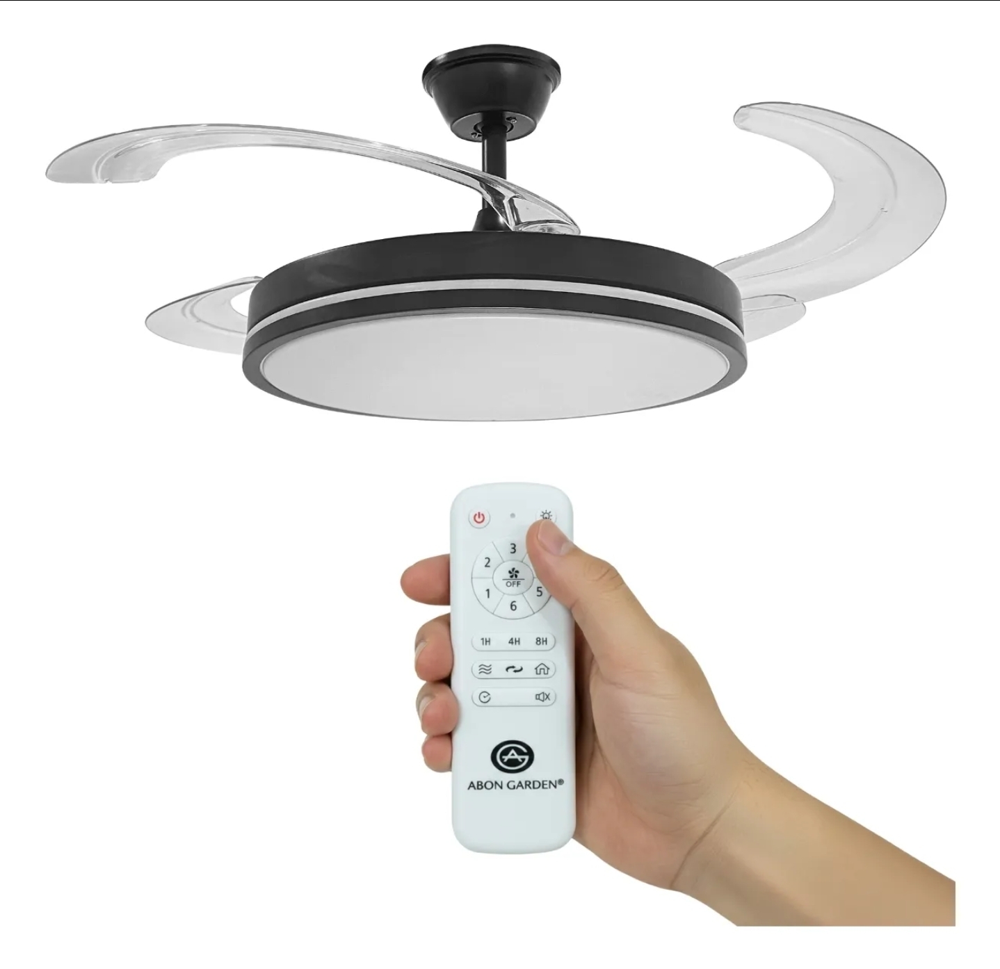 Ventilador de techo 4 aspas retractiles Color negro. 50cms de diámetro. Luz Led.